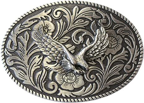 Каубойска катарама с овална форма и състарен сребрист вид.