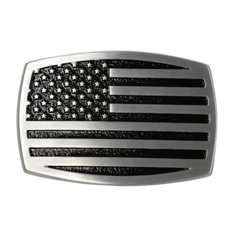 Катарамата American Flag Brushed Metal Western гордо представя звездите и ивиците на американското знаме в изискан матов завършек, съчетавайки патриотизъм с класически уестърн стил.