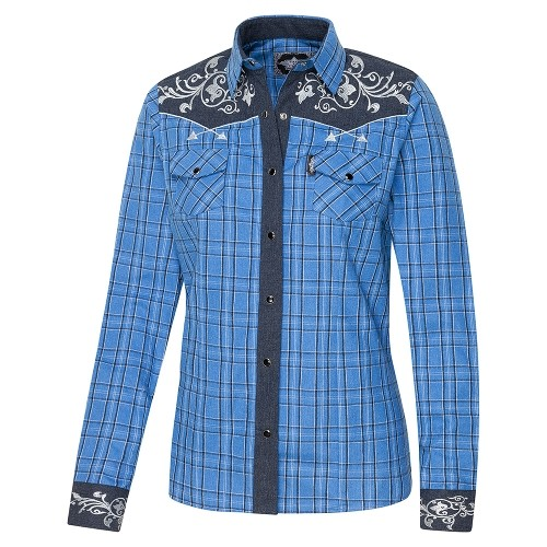 Дамска риза с бродерия в уестърн стил и предни джобове с капачета.