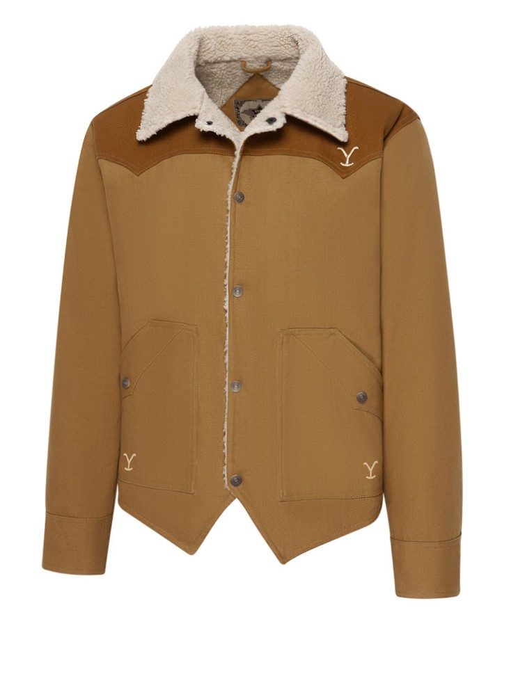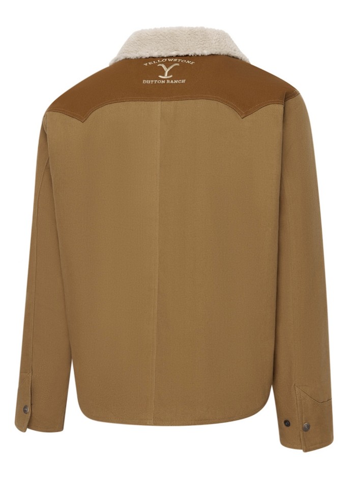 Класическо уестърн яке от плат (canvas), в оригиналния стил на Джон Дътън от хитовия сериал „Йелоустоун“. С уютна подплата и яка от топла изкуствена агнешка кожа (faux shearling), то предлага оптимален комфорт