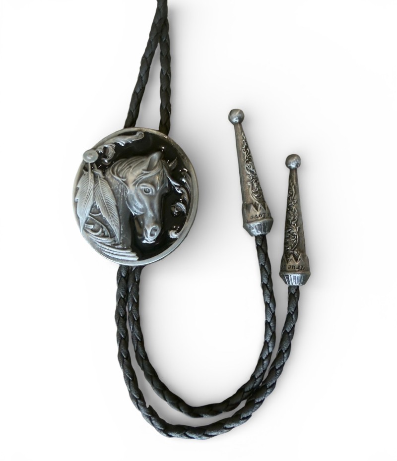 Болотай- глава на кон. Релефна глава на кон на фон от черен емайл